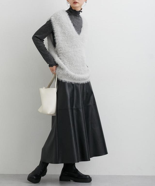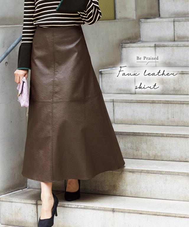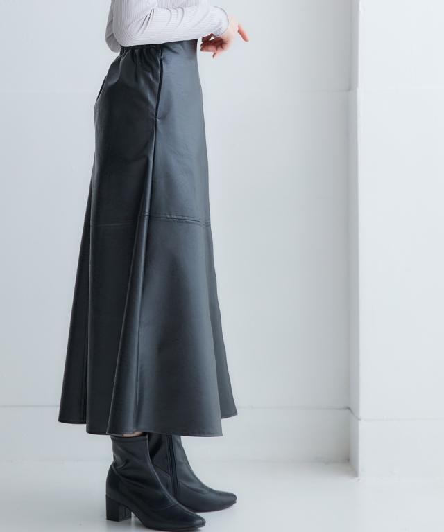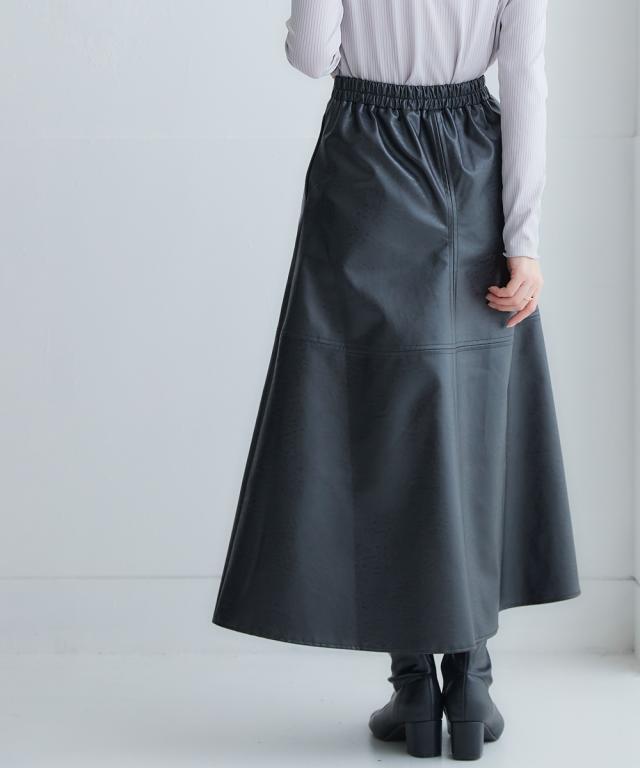 ロング丈フェイクレザースカート