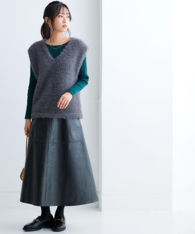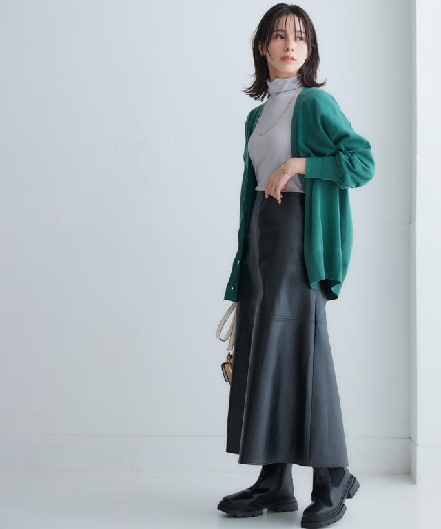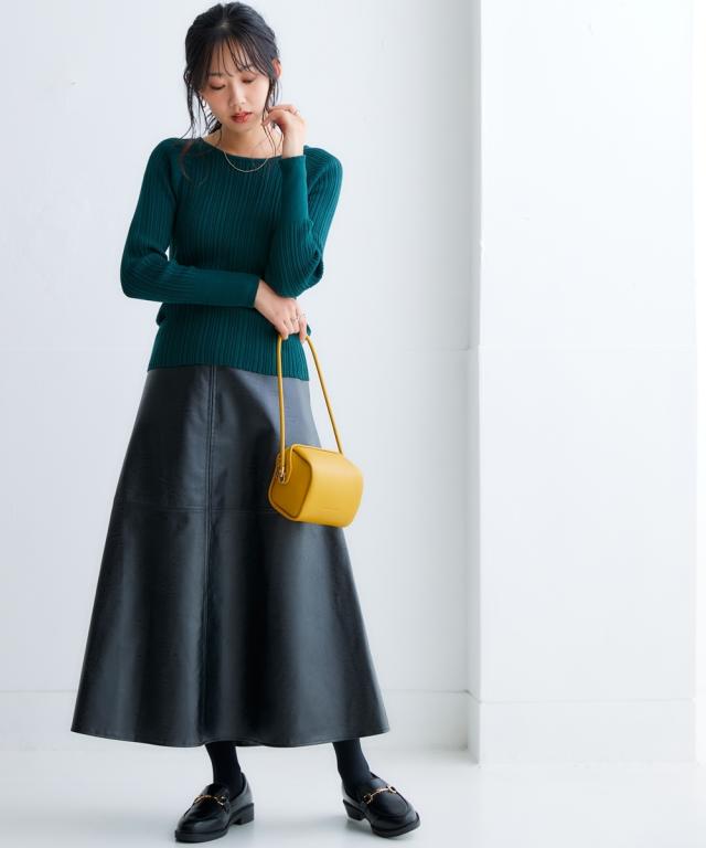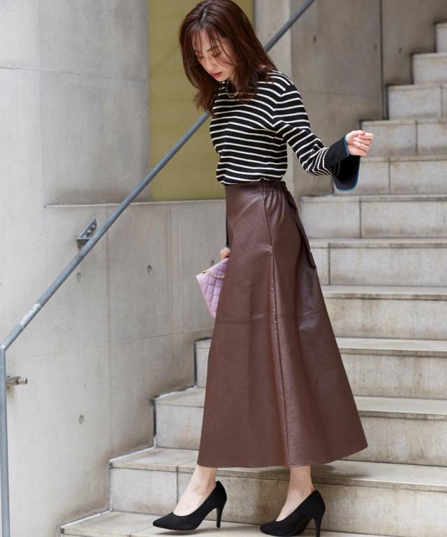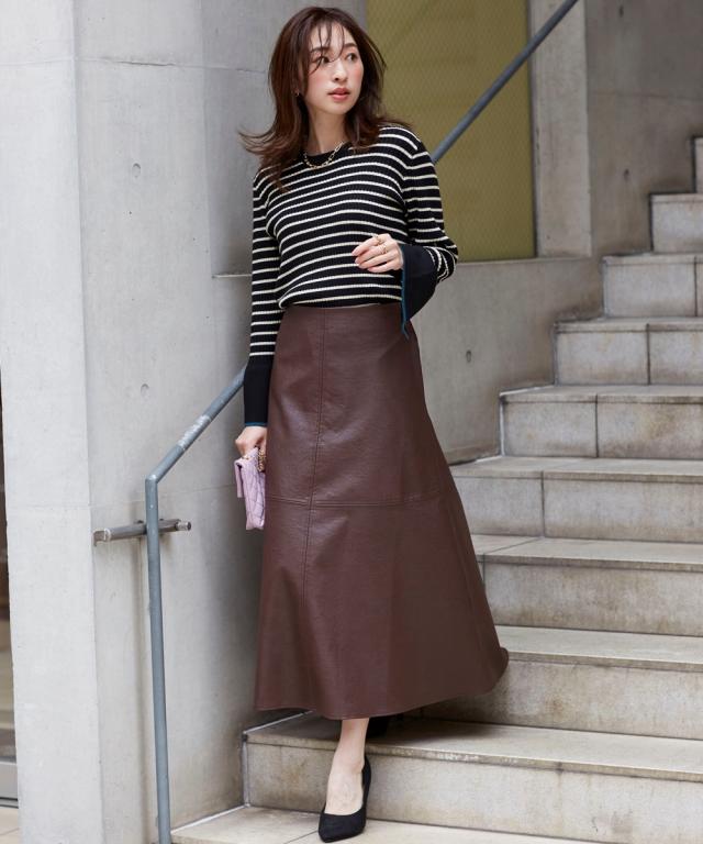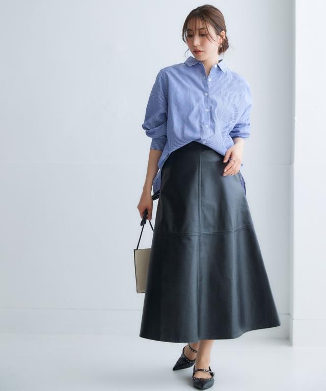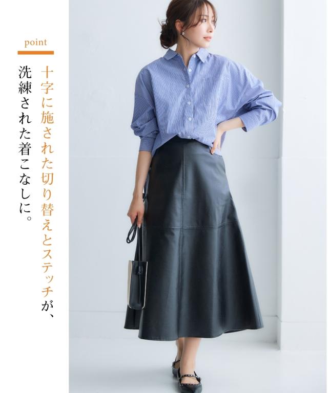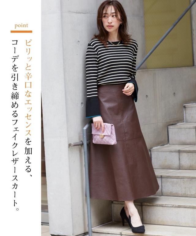 きれいめカジュアルスタイルにぴったりの、フェイクレザーのスカートです。 ストンとしたシルエットで、縦のラインを強調し、すっきりと着こなしていただけます。 また、ハイウエストデザインで脚長効果も抜群です。 合わせるトップスを選ばないので、デイリーユースに大活躍すること間違いなしのアイテムです。 ■デザイン シンプルなデザインで、合わせるトップスを選ばないのがポイント。 控えめなAラインシルエットと縦のラインを強調し、すっきりと着こなしていただけます。 ■素材 フェイクレザーを使用していますが、本革のような質感で高級感があります。 ■おすすめのスタイリング きれいめカジュアルスタイルにぴったりのスカートです。 ブラウスやニット、スニーカーやブーツなど、合わせるアイテムによって様々なスタイリングが楽しめます。 ビジネスシーンにも着用できるので、通勤服としてもおすすめです。