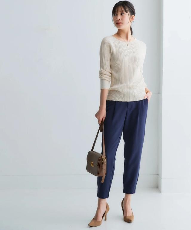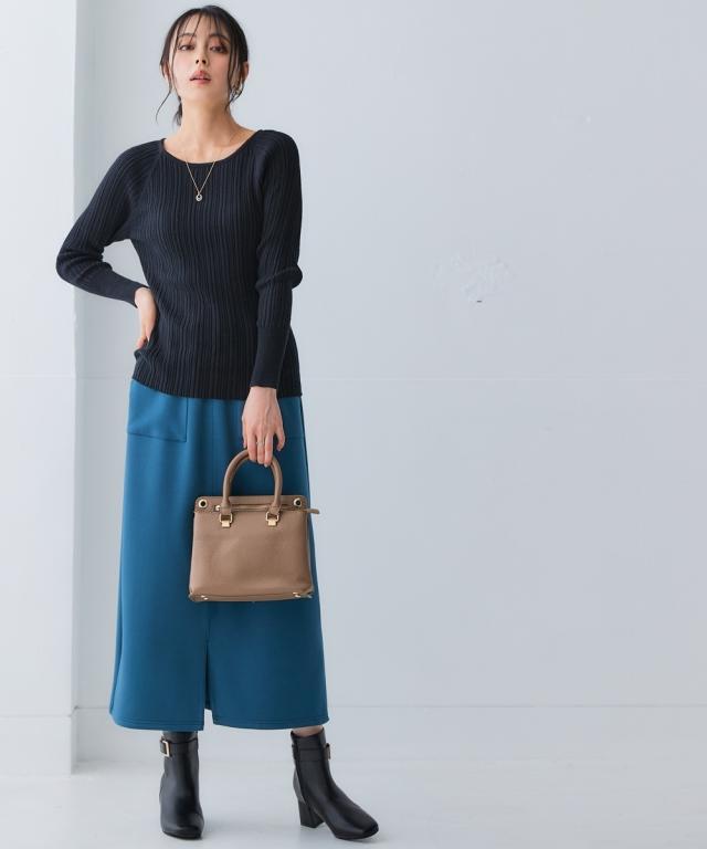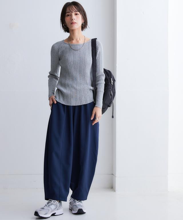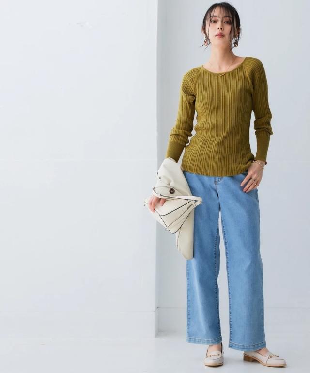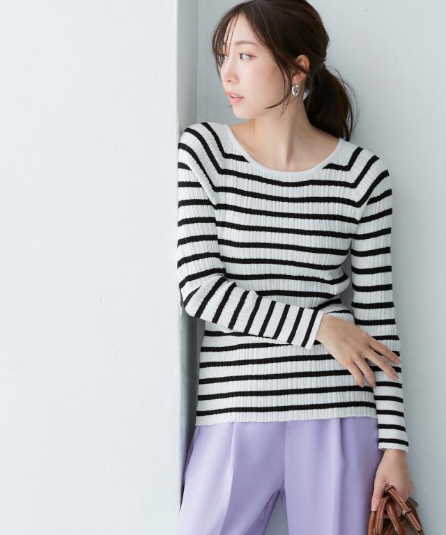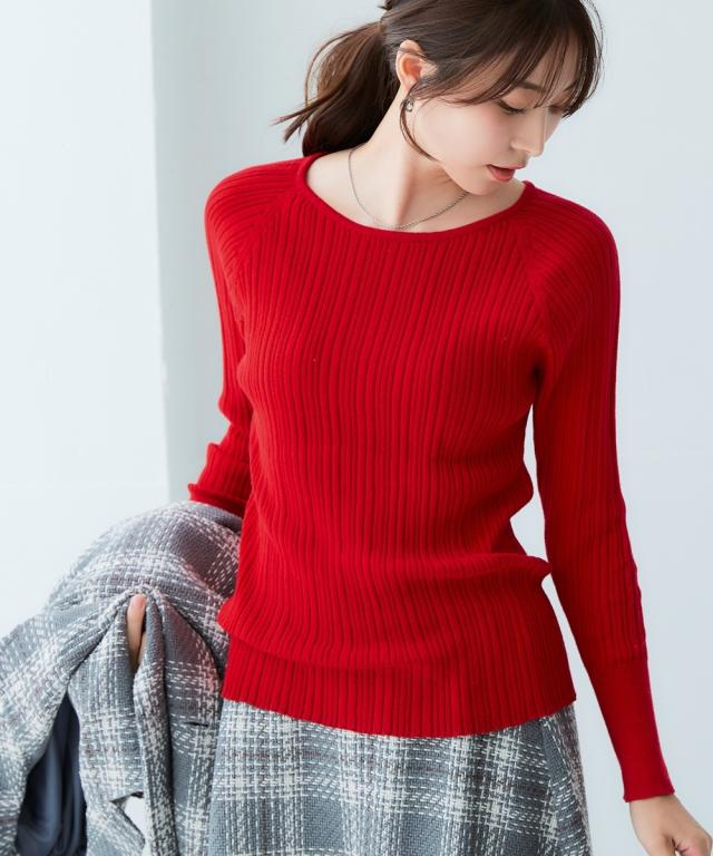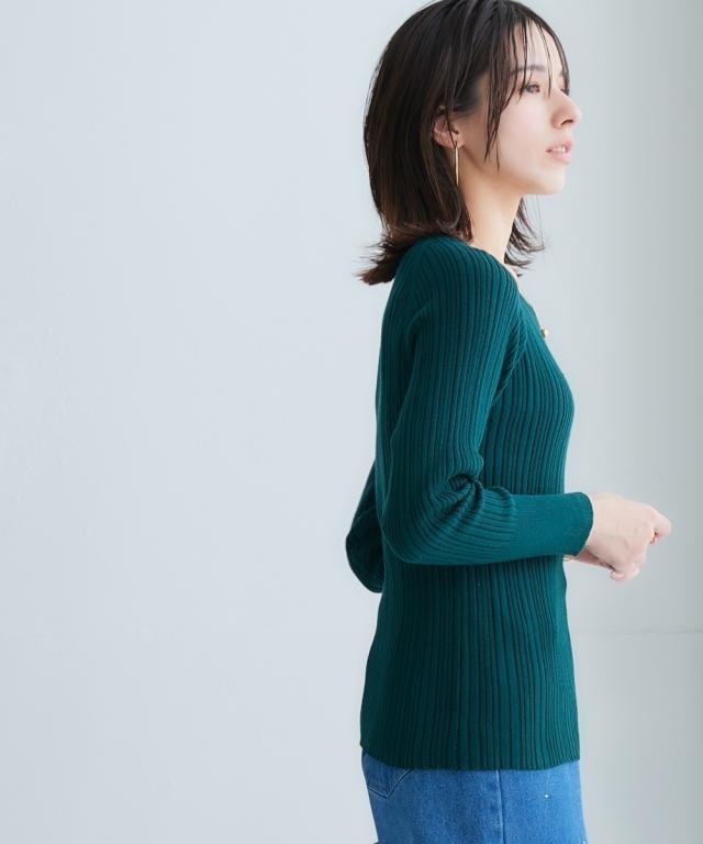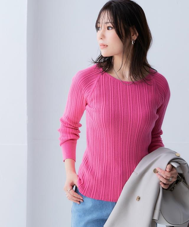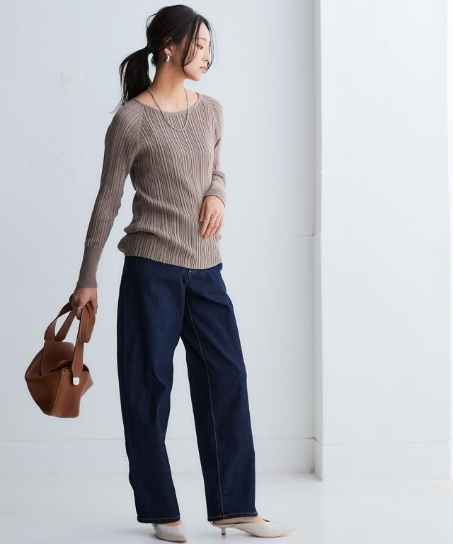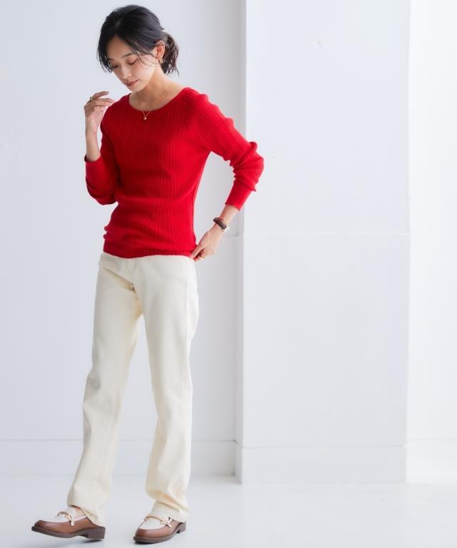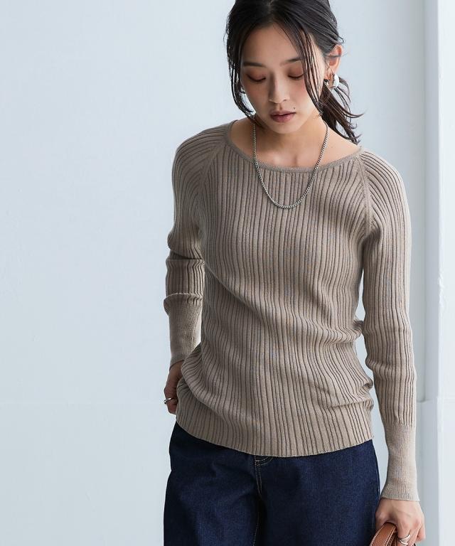 ニットはチクチクする・・もこもこするから重ね着しにくい・・そんな方に是非着ていただきたい!素肌に着てもチクチクしない!着心地にこだわったお肌に優しい綿100%素材。(本体部 綿100%)細い糸で、あえて薄手に編んでいるので、着膨れせずインナー使いにも最適!幅広いシーズンの着こなしに使える優秀リブニットです。■デザイン・デコルテをきれいに見せてくれるやや浅めの開きのクルーネックは、幅広いコーデに合わせやすく、シーズンレスにお使いいただけます。・立体感のあるランダムリブの編地は肉厚を拾いにくく、縦長効果を発揮して細見せを叶えます。・細いリブと太いリブを組み合わせてこだわった編地で、優しい綿の柔らかくしなやかな素材感を保ちながら、大人リッチなデザインに仕上げています。・一見、すごくタイトで細身にみえますが、抜群の伸縮性で、身動きしやすくストレスフリーな着心地です。・袖口は細かいリブになっており、やさしくフィットしてくれます。細かいリブ幅部分を長めに設計しているので、重ね着もしやすく、袖をまくった際にもずれずにしっとりと肌になじみます。■素材・本体部が綿100%だから素肌にも優しく心地よい上質感。・細い糸で、あえて薄手編んでいる