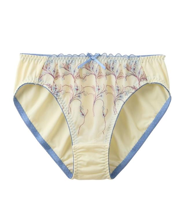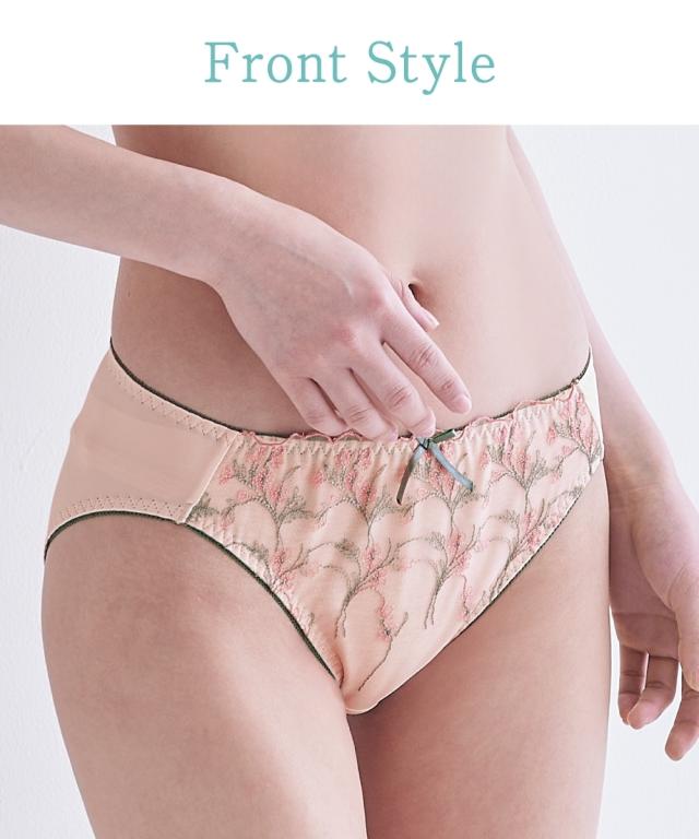 スタイルアップ小花レースブラジャーとコーディネートできるペアショーツ。可愛らしい野花のような小花刺繍柄で気分も上がる。配色デザインも高見えポイント。身生地は2WAY生地で伸縮性抜群。