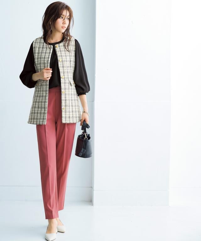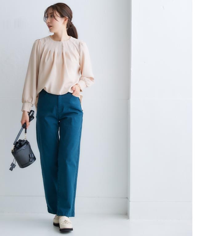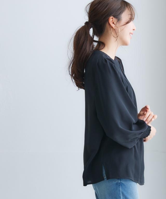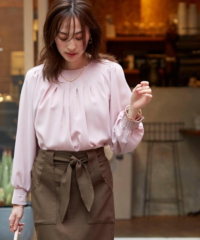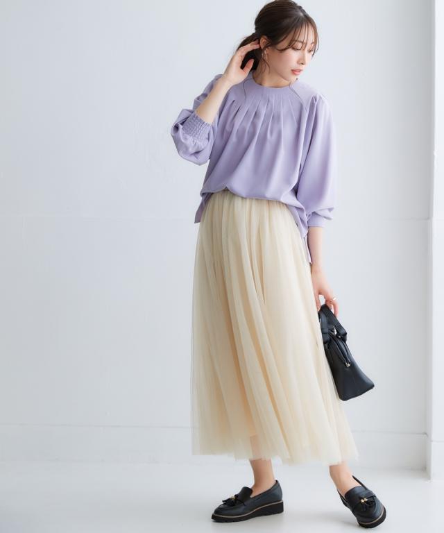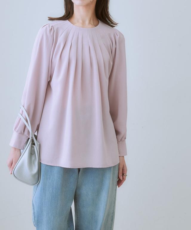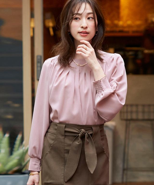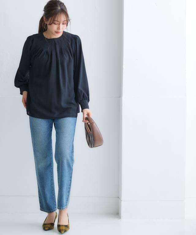 きれいめカジュアルスタイルにぴったりの、ボリュームスリーブタックブラウス。 タック使いで立体感のあるデザインがポイントで、二の腕をカバーしてくれるのも嬉しいポイントです。 さらりとした肌触りの良い素材で、着心地も抜群。 オフィスシーンから普段着まで、幅広いシーンで活躍してくれるアイテムです。 ■デザイン ボリュームスリーブタックブラウスは、タック使いで立体感のあるデザインがポイントのブラウスです。 ふわりとした袖と長めのカフスが二の腕をカバーしてくれるので、気になる方にもぴったりです。 また、すっきりとしたクルーネックで、顔周りをすっきりと見せてくれます。 ■素材 さらりとした肌触りの良い素材を使用しています。 シワになりにくいので、お手入れも簡単です。 ■おすすめのスタイリング ボリュームスリーブタックブラウスは、きれいめカジュアルスタイルにぴったりのアイテムです。 スラックスやスカートと合わせてオフィスシーンに、デニムと合わせて普段着に、と幅広いシーンで活躍してくれます。 また、ジャケットを羽織れば、よりきちんとした印象に。 小物使いで、自分らしいスタイリングを楽しんでください。