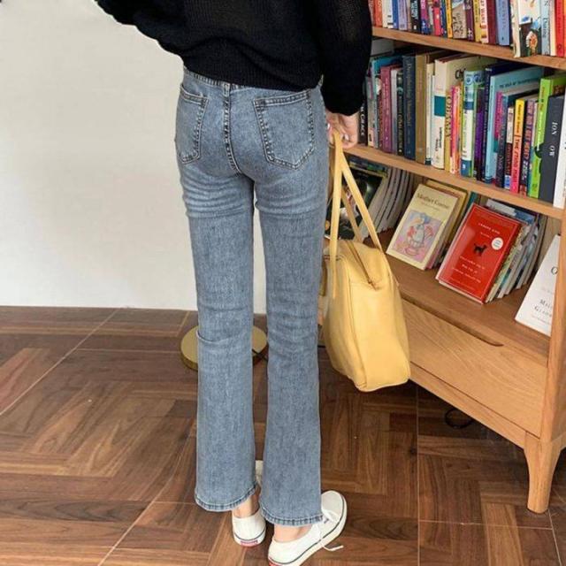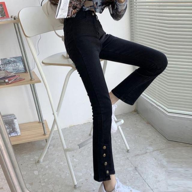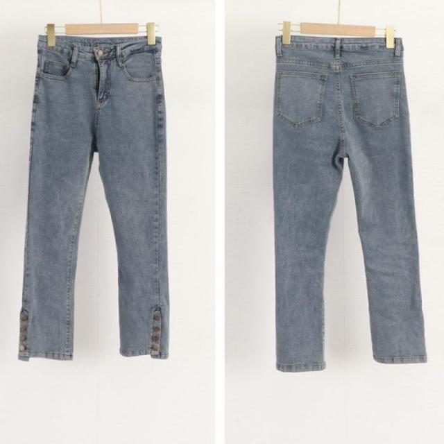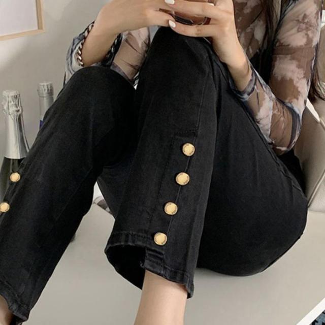 おしゃれ スリムジーパン ハイウエスト 裾ボタン ジーンズ カジュアル ボトムス 春秋夏 レトロ スキニーデニム 着やせ