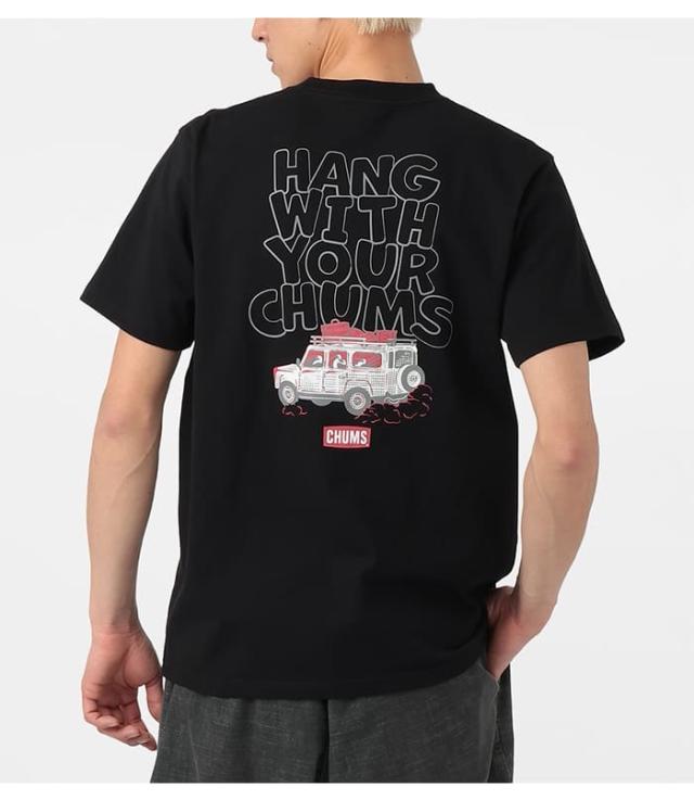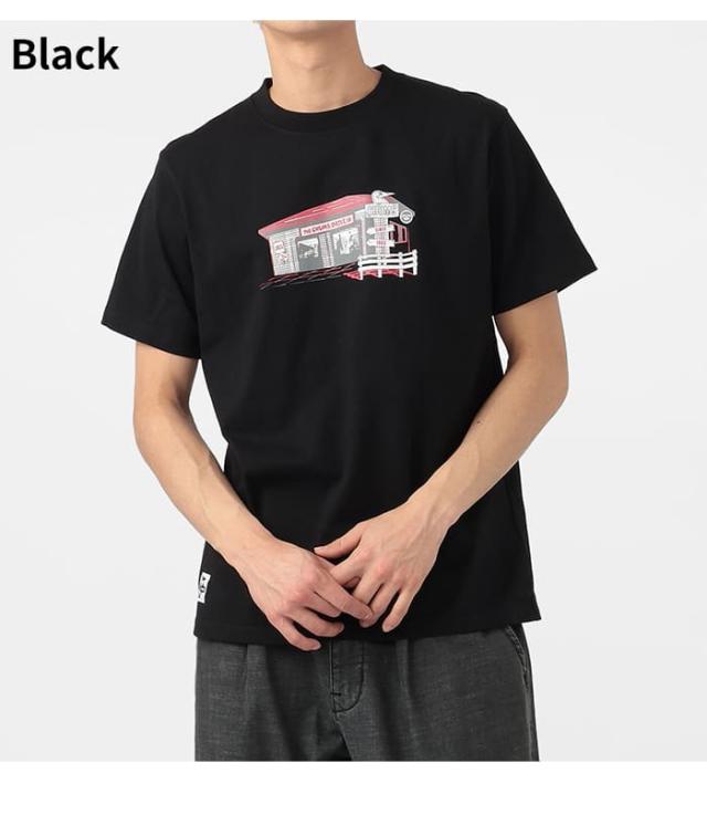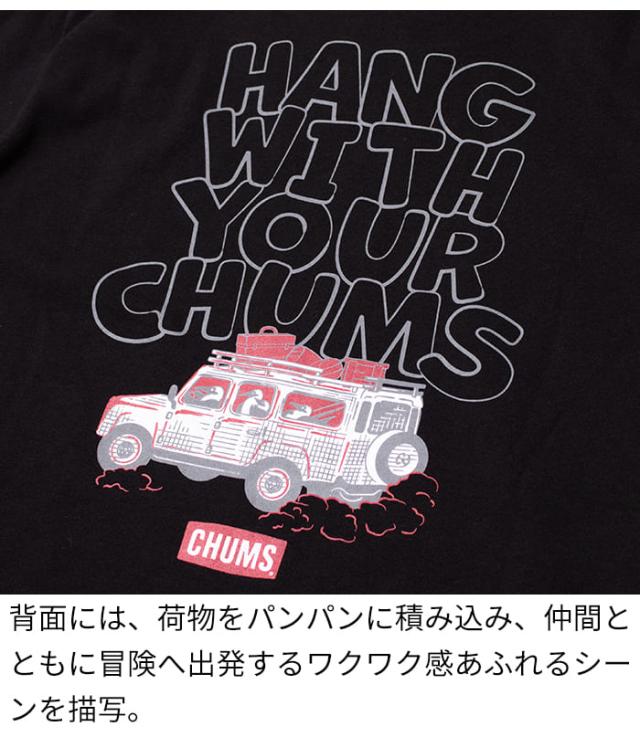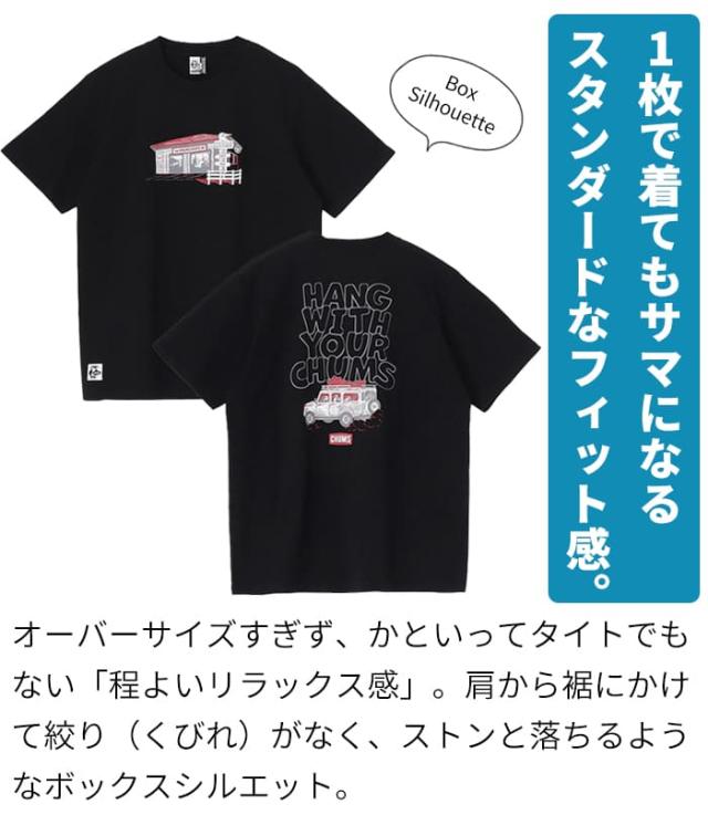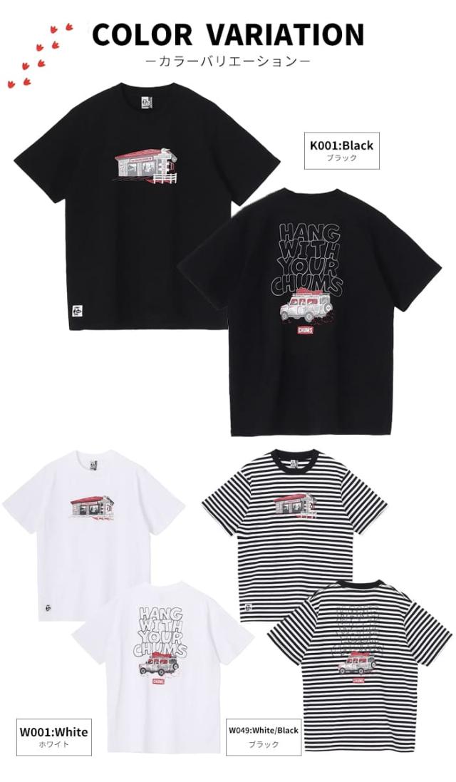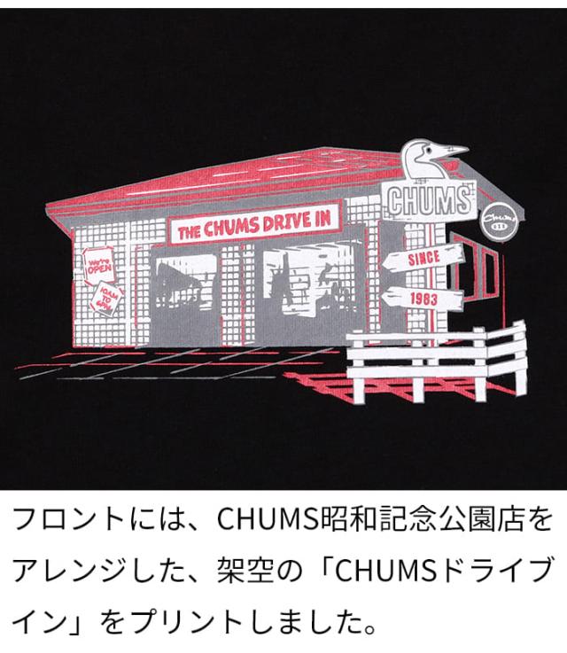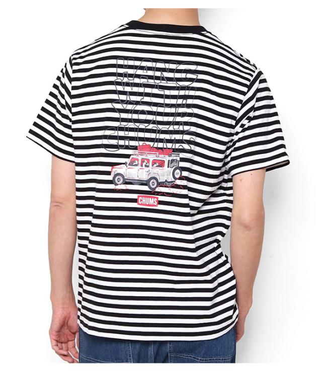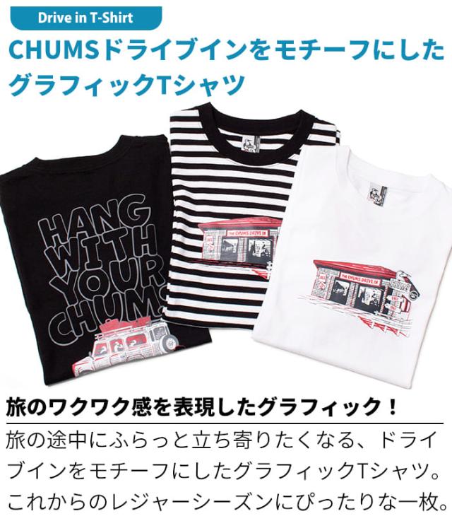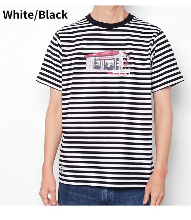 Tシャツ 半袖 メンズ 綿100 チャムス CHUMS ドライブイン アメカジ アウトドア ブランド カジュアル 春夏 CH01-2744 USAコットン 黒 白 ボーダー バックプリント かわいい プリント 柄