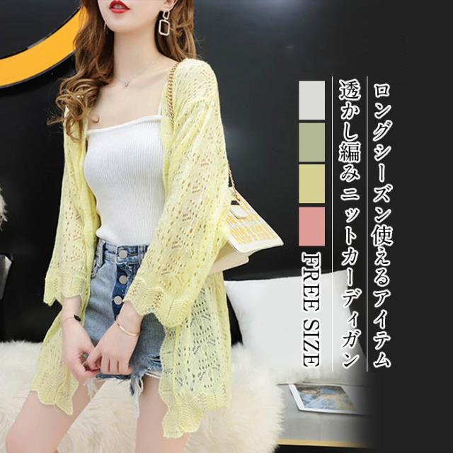 カーディガン レディース 春 ニットカーディガン ロング ニット カーディガン ニット 花柄 羽織 はおり トップス 春物 ロングニット 夏 長袖 透かし編み エアコン 冷房 対策