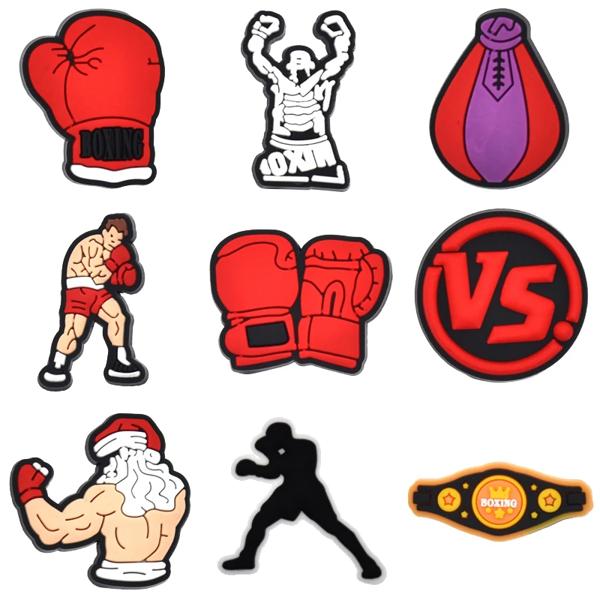 PVCの赤いボクシングバッジ,1ピース,女性用,バックル,子供用ピン,装飾ジーンズ,リストバンド,靴アクセサリー,卸売