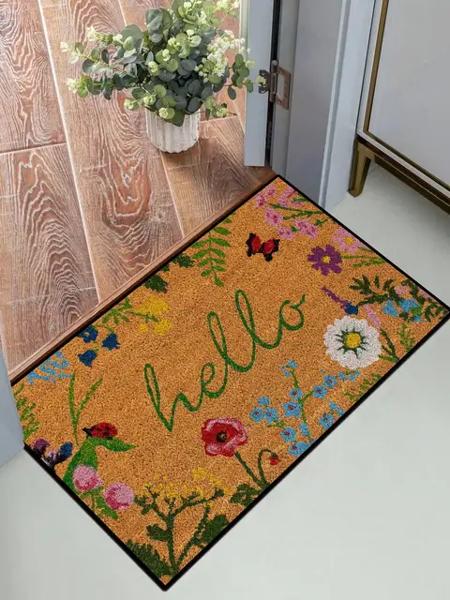 花と文字の印刷されたドアマット 家庭用の小さな滑り止めバスマット キッチン 庭 1ユニット