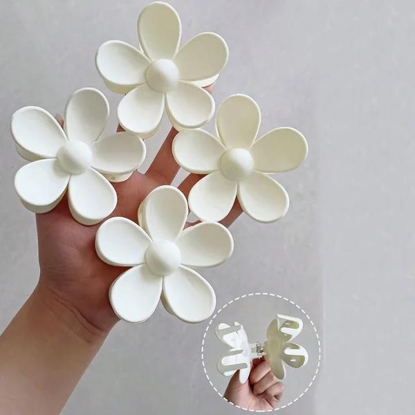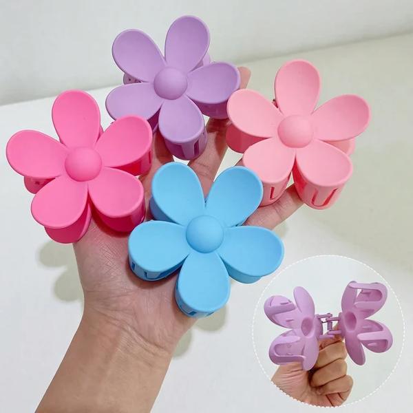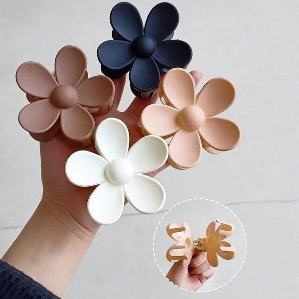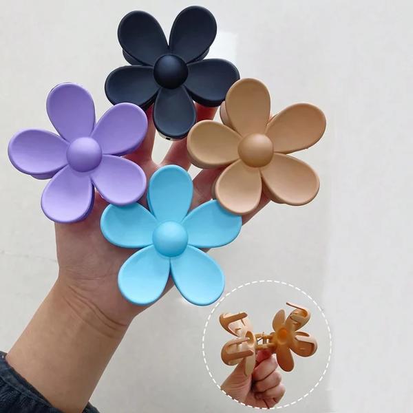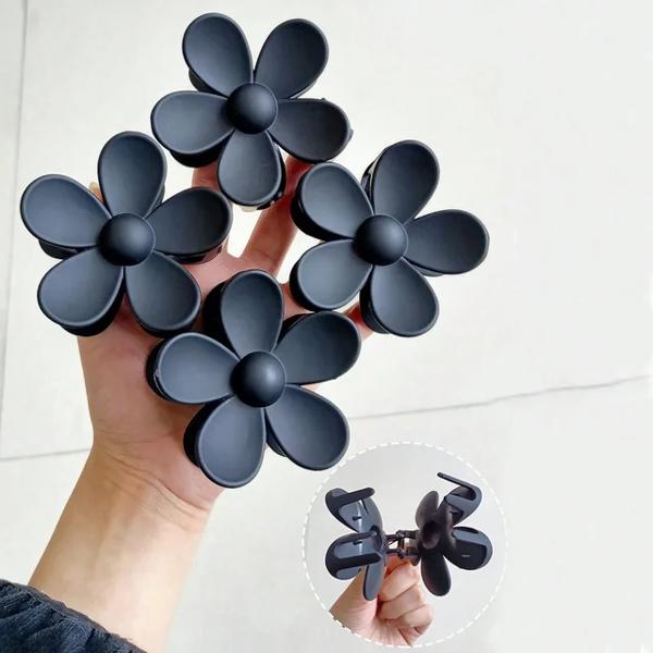 女性のための大きな花の爪クリップ 滑らかな髪の爪 マット ヘアピン ヘアアクセサリー 4個