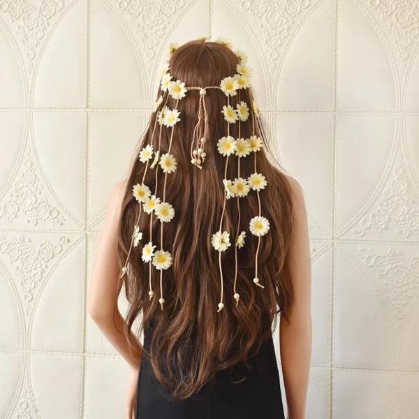 女性と女の子のための調節可能なボヘミアンヘッドバンド ひまわり デイジーヘアバンド エスニックヘアアクセサリー ファッション 1個