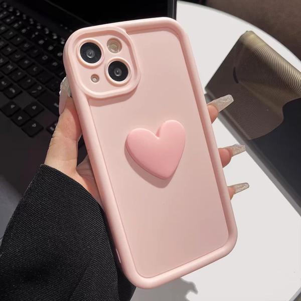 ピンクのラブハートシリコンフォンケース 耐衝撃性 iPhone 15 14 13 12 pro max 11 pro xs max 7 8 plus 韓国スタイル
