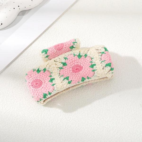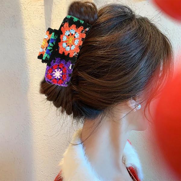 Awaytr-女性のためのアクリルフラワーヘアクリップ 甘いヘアピン ヘアスタイリング 大型バレッタ ヘアアクセサリー ニットプリント 新しい