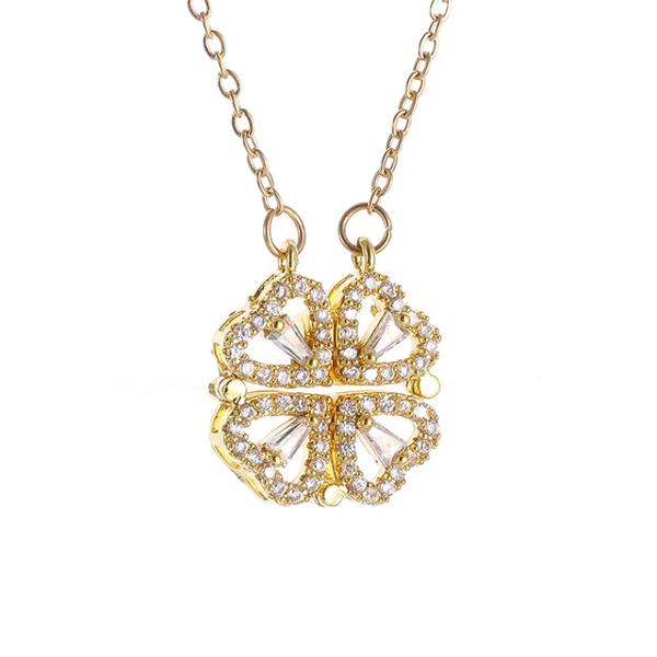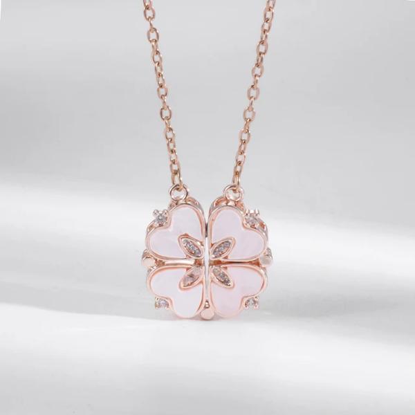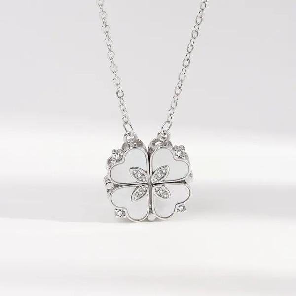 女性のための磁気折りたたみ式ハートネックレス 絶妙なチャーム 4つの葉のクローバーペンダント 運のジュエリー 女の子の休日の贈り物 ファッション