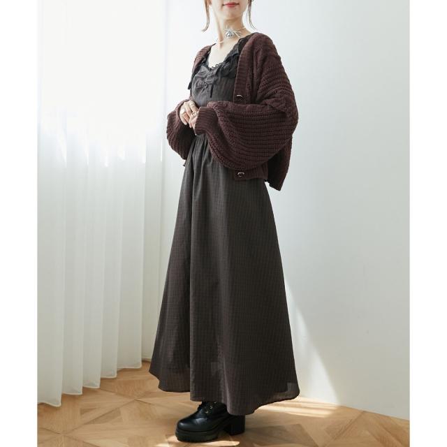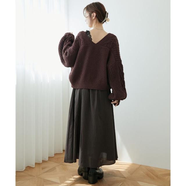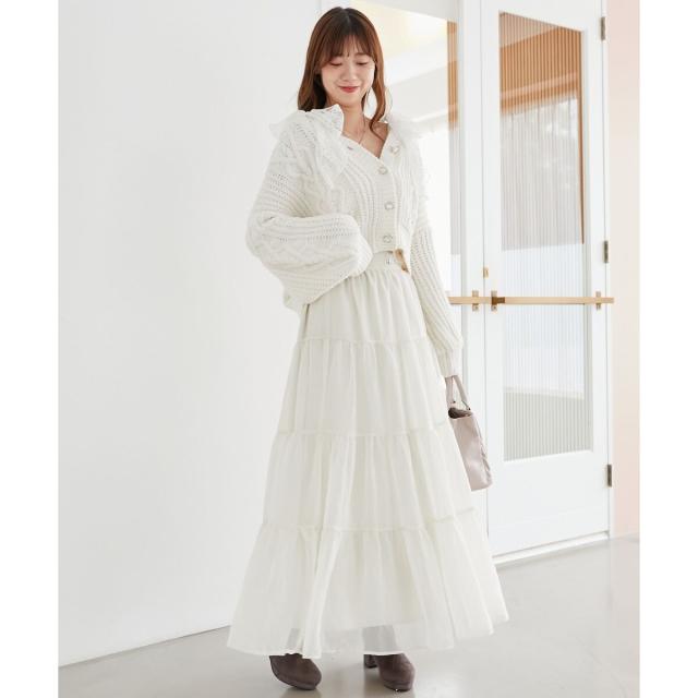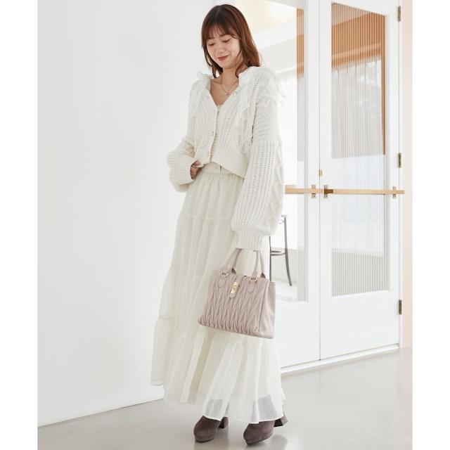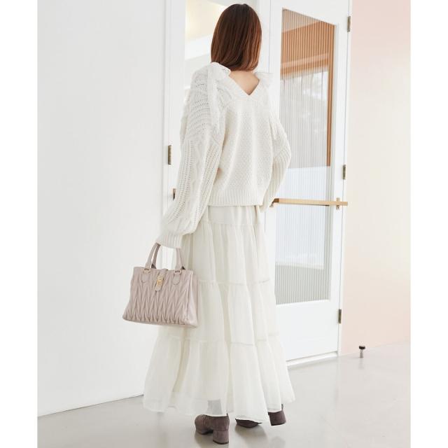 ゆれ感のあるスカートと合わせた大人フェミニンコーデがおすすめです。