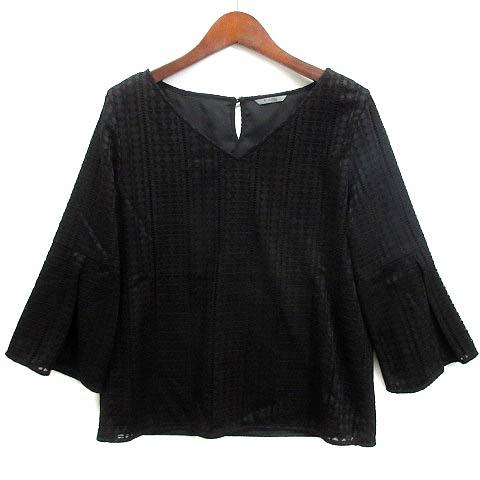 【中古】ビーアビリティ B ability ボッシュ Vネック レース ブラウス ベルスリーブ 七分袖 プルオーバー ブラック 黒 38 レディース