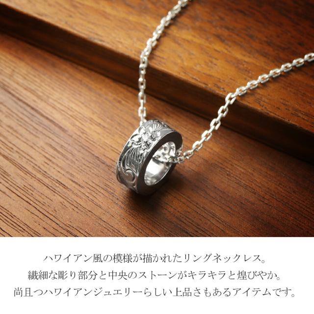 DROPS ハワイアン シルバー リングネックレス ネックレス チェーン付き ペンダント レディースネックレス 花 植物 模様 ハワイアンジュエリー