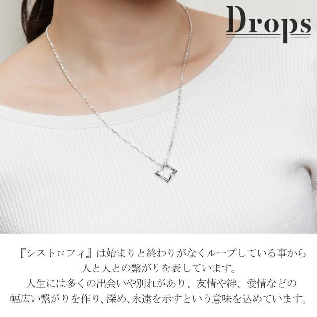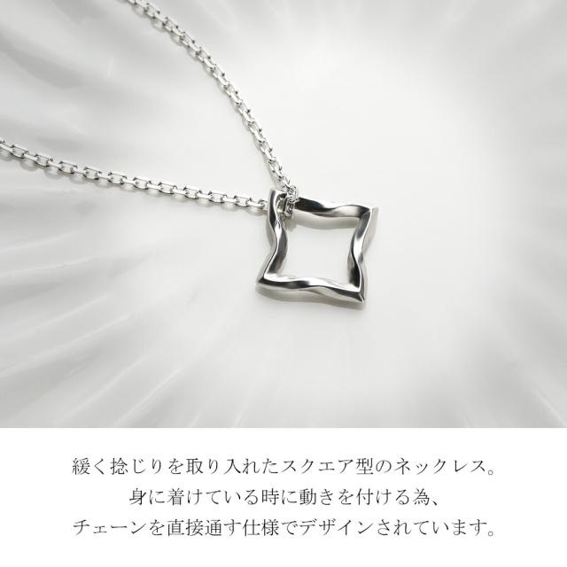 DROPS シストロフィ スクエア シルバー ネックレス チェーン付き ペンダント シンプル 捩じり 四角 輪 輪っか メンズ レディース 男性 女性 彼氏 彼女