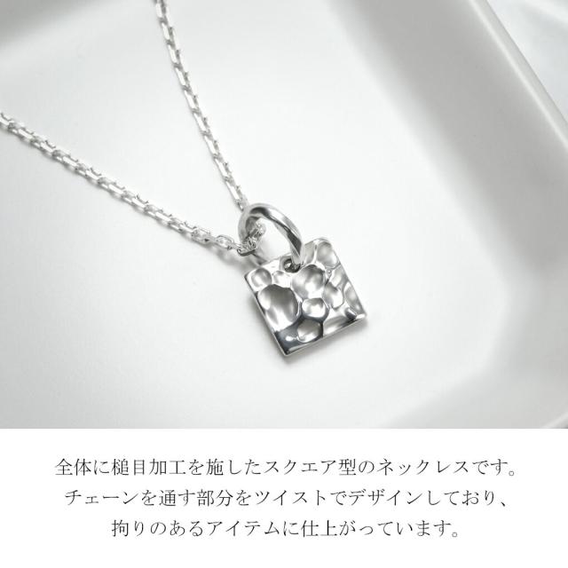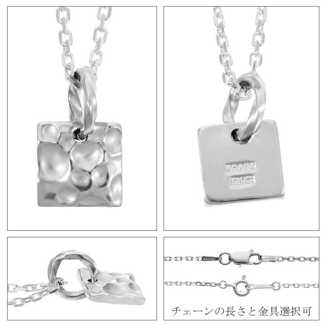DROPS リフレクト スクエア シルバー ネックレス チェーン付き ペンダント シンプル 四角 槌目 鎚目 シンプルネックレス メンズ レディース 男性 女性