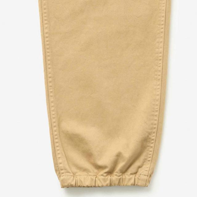 裾にかけて細くなるテーパードシルエットで、裾にリブが施されているのが特徴。
