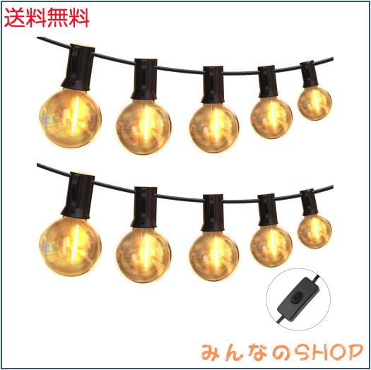 LEDストリングライト 防雨型 延長コード スイッチ付き 16m 26個電球 E12ソケット 電球色 PC素材 破損しにくい 屋内 屋外照明 ガーデンライト 誕生日 ハロウィン 結婚式 パーティー電飾 庭 商店街