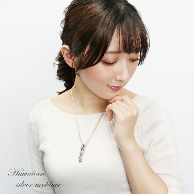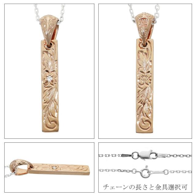 DROPS ハワイアン プレート ネックレス シルバー ピンクゴールド チェーン付き ペンダント レディースネックレス 花 植物 模様 ハワイアンジュエリー