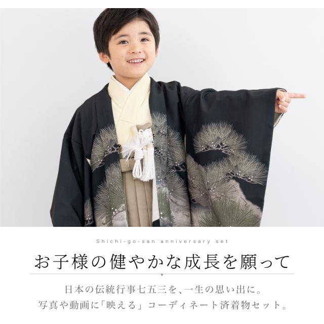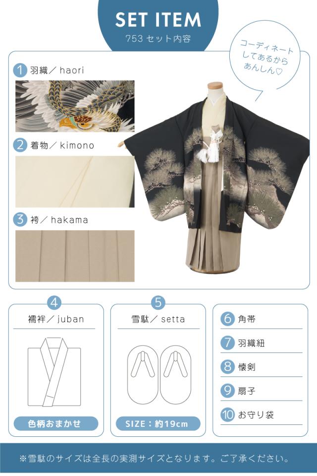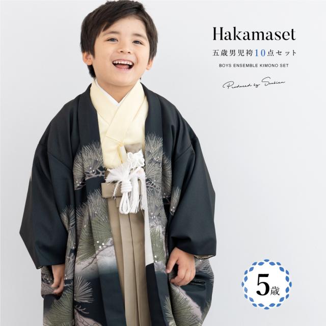 七五三 着物 5歳 販売 五歳 袴セット 10点セット 羽織 半襦袢 袴帯 羽織紐 扇子 懐剣 お守り袋 雪駄 セット 男の子 黒 ベージュ 和服 男児 送料無料