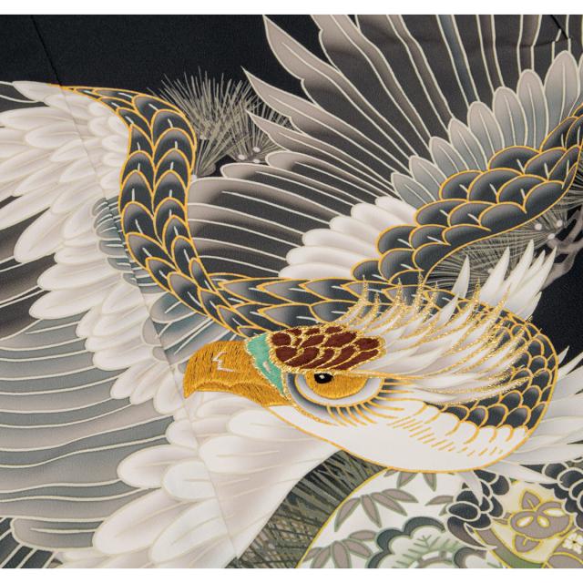 羽織には鷹や松など雄々しい絵柄が配され、着物はシンプルな無地のデザインです。