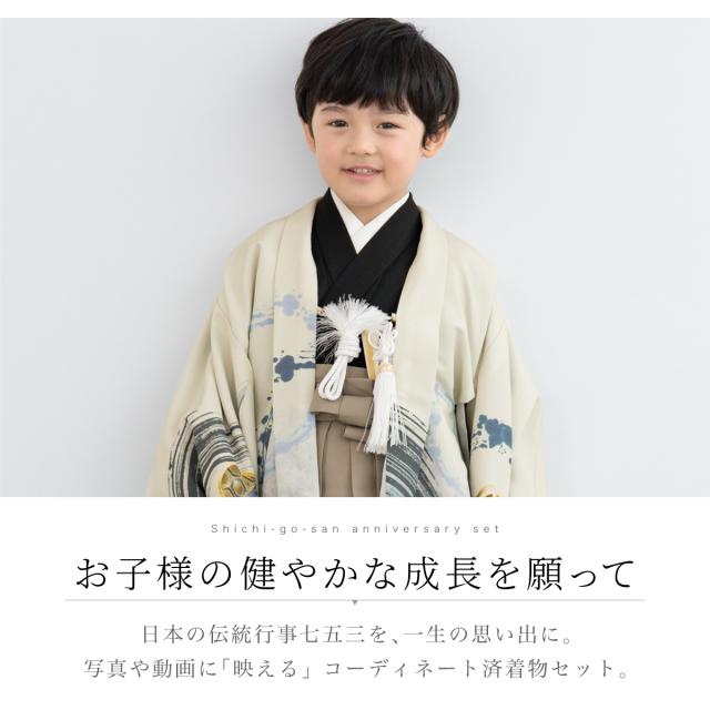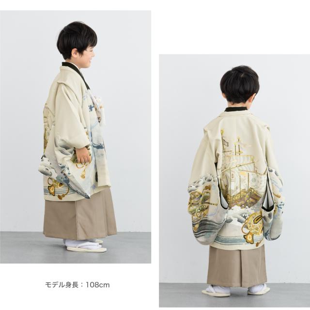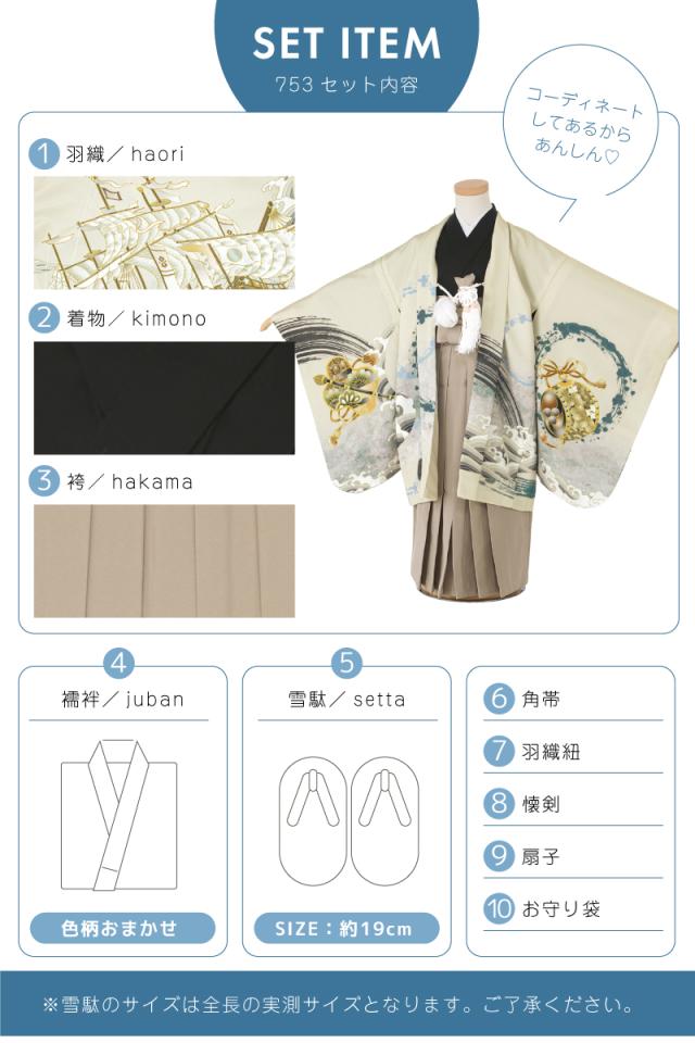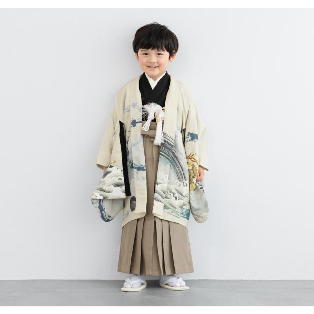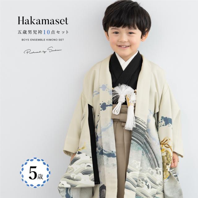 七五三 着物 5歳 販売 五歳 袴セット 10点セット 羽織 半襦袢 袴帯 羽織紐 扇子 懐剣 お守り袋 雪駄 セット 男の子 クリーム ベージュ 和服 男児 送料無料