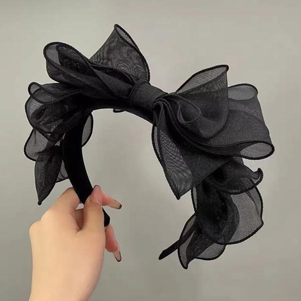特徴:Vintage black layered mesh large bow hair hoop headdress