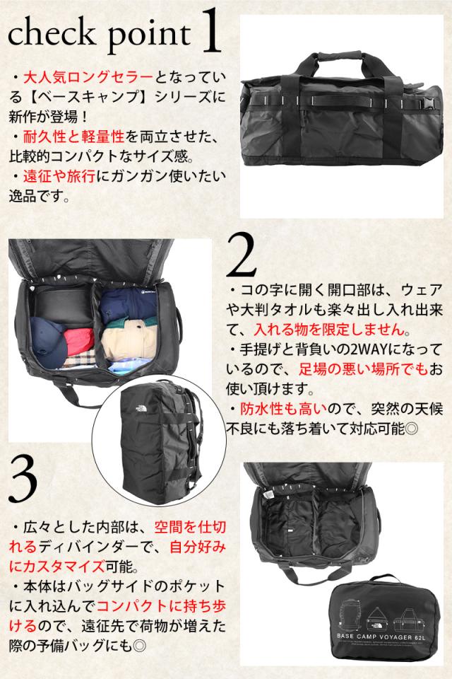 ノースフェイス バッグ ボストンバッグ リュック デイパック 2way THE NORTH FACE ベースキャンプ ボイジャーライト 62L NM82378 ポイント10倍 送料無料 大容量 軽量 防水 ラッピング無料【正規代理店】
