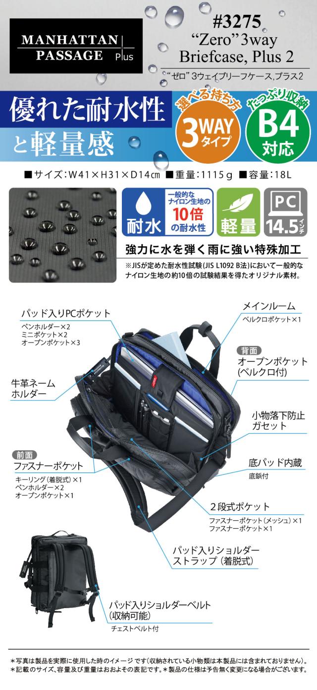 マンハッタンパッセージ MANHATTAN PASSAGE 3wayビジネスバッグ ショルダーバッグ リュックサック プラス 3275 ビジネスリュックサック