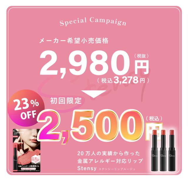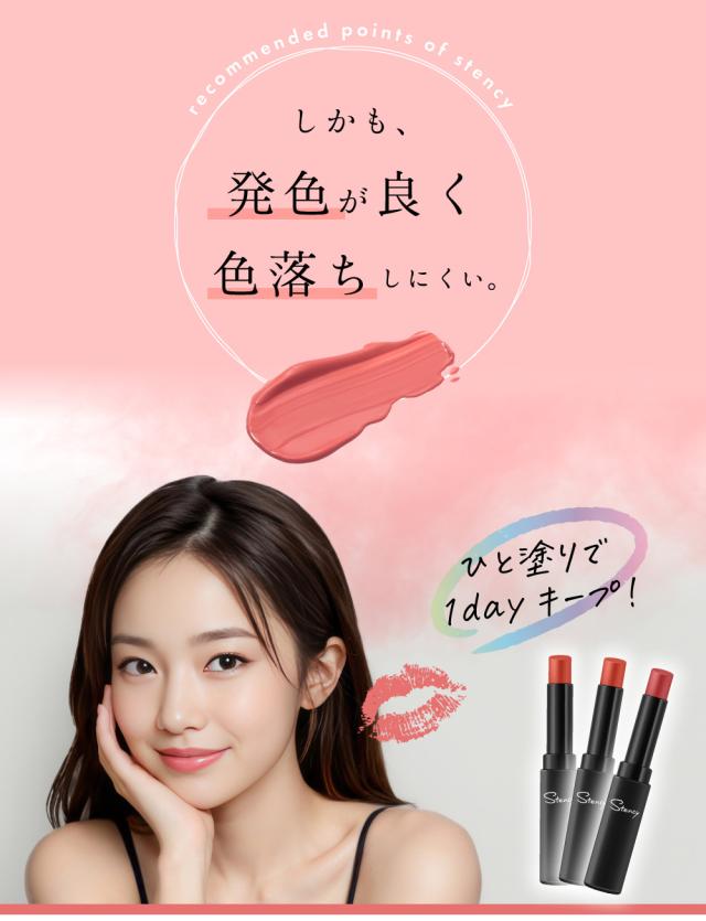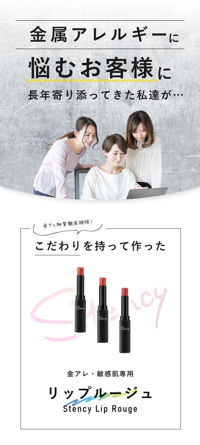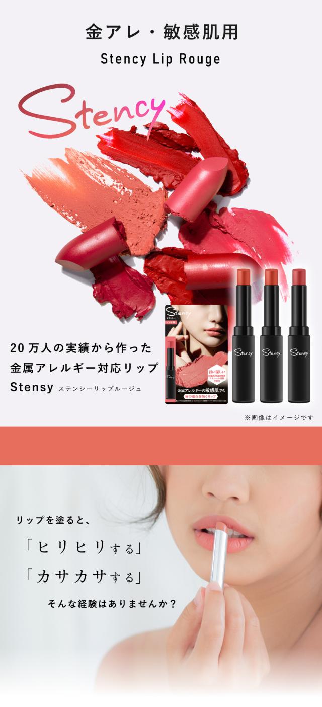 金属アレルギーの敏感肌でも安心して使える口紅 ステンシーリップ 口紅 アレルギー対応 3色展開 stency-lip01