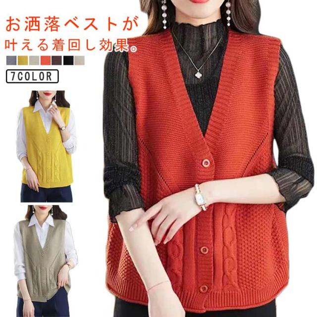 春夏 ニットベスト レディース 春夏 前開き 羽織り セーターベスト vネック ベストレディースファッション トップス ベスト ジレ