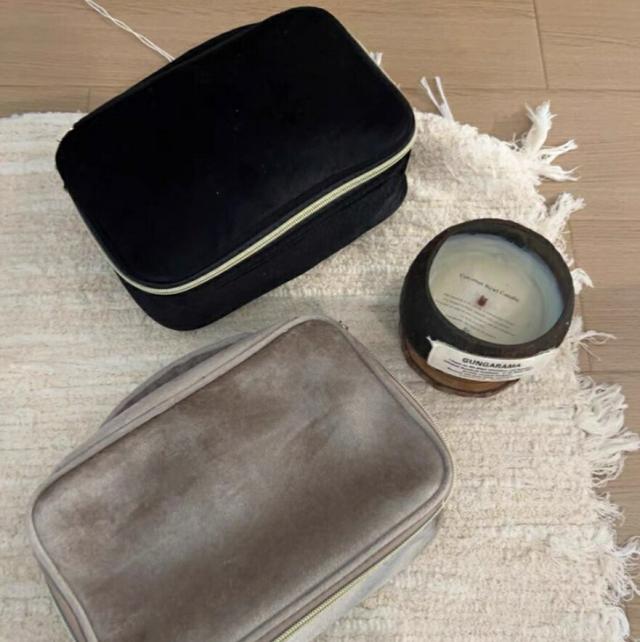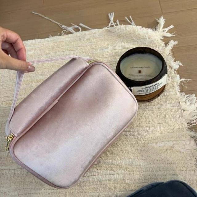 たっぷりとコスメが収納できるベルベットバニティポーチです