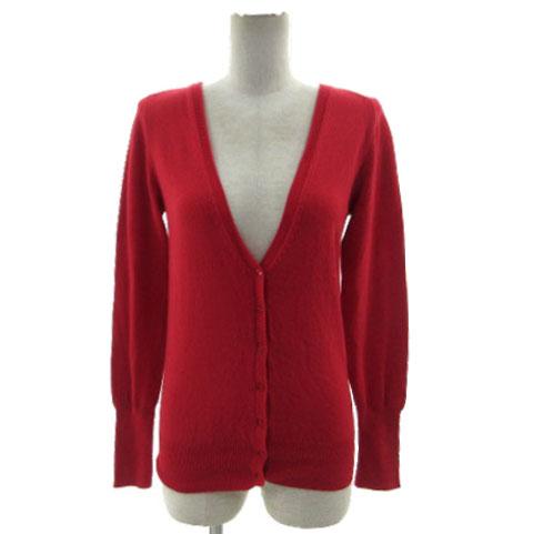 【中古】ザラ ZARA カーディガン ニット 長袖 コットン混 レッド 赤 M レディース