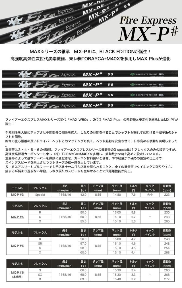ファイアーエクスプレスMAXシリーズ初代「MAX-WBQ」、2代目「MAX-Plus」の飛距離と安定性を継承したMX-P#の性能はそのままに、ご要望の多かった数量限定ブラックカラーが登場!