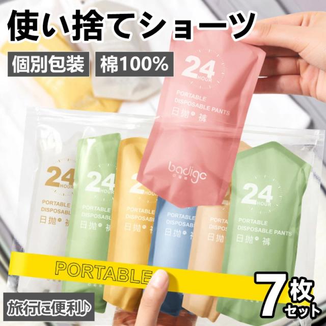 使い捨て パンツ 7枚入 使い捨て ショーツ 個別包装 綿100% 使い捨てタイプのコットン下着 業務 施術用 旅行 入院 修学旅行 携帯 介護 使い 消耗品 インナー 携帯用 避難 妊娠 便利 持ち運び 非常時 地震 全7色 送料無料