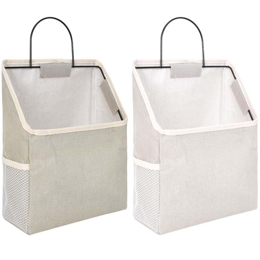 ウォールポケット 壁掛け 収納 壁掛けバッグ フック付き 収納バスケット 布製 金属フレーム付き 2個 灰色、白 ドア 収納 吊り下げ ポケット おもちゃ、衣類、本、雑誌、封筒、スナックの…