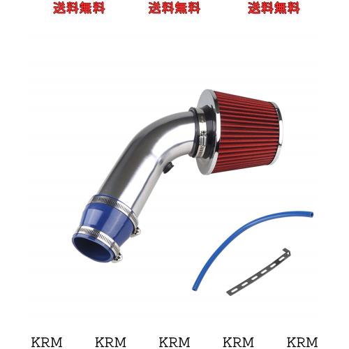 ADPOW 76mm口径 汎用 エアクリーナー+アルミ製エアインテークパイプ セット 吸気効率UP 自動車用 NAとターボ車兼用 シルバー
