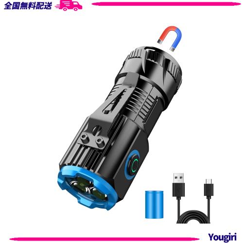 ?【√100g超軽量・クリップ・マグネット付き 強力付着・持ち歩きやすい!】この性能満載かつ優れた小型性を持つフラッシュライトの重量はわずか100gで、超軽量のデザインでポケットやバッグに入れて持ち歩きやすく、いつでもどこでも取り出して利用することができます。思いやりがあるデザインによく工夫に工夫を重ねて懐中電灯にはクリップと強力付着可能のマグネットも付き、クリップで帽子、服、バッグなどのところに据え付けるやマグネットで金属物に付着させて手で持たずに仕事・作業に取り組むことができます!