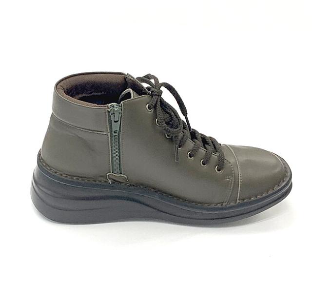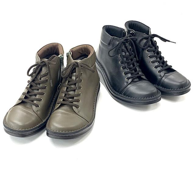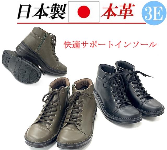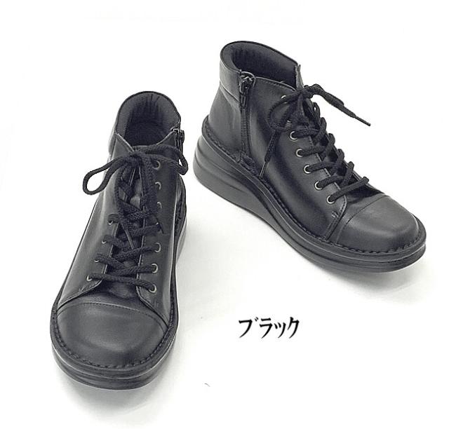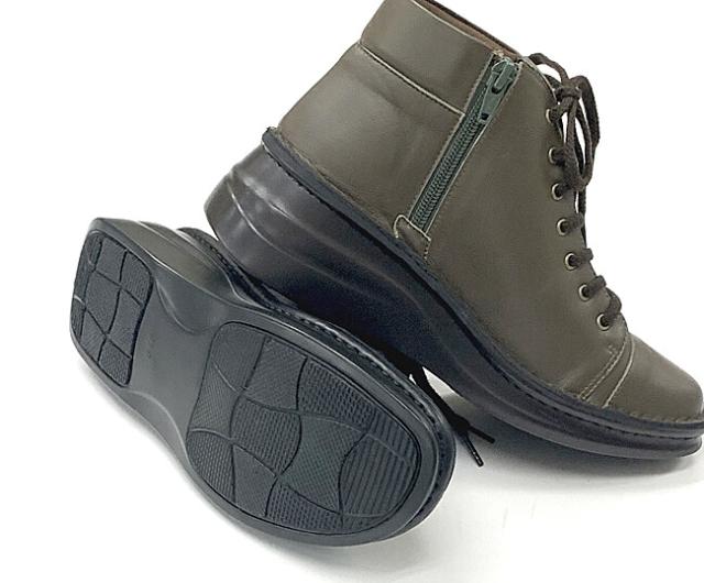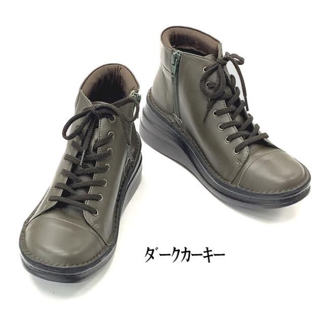日本製 本革 ショートブーツ レディース ブーツ ウェッジ 厚底 幅広 3e 4e 外反母趾 レースアップブーツ レザーブーツ ショート レースアップ 黒 ブラック カーキ