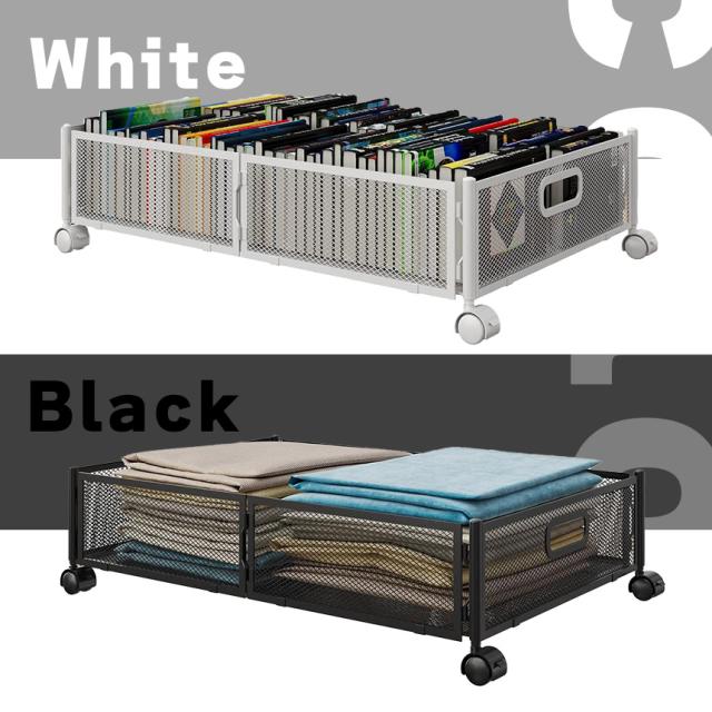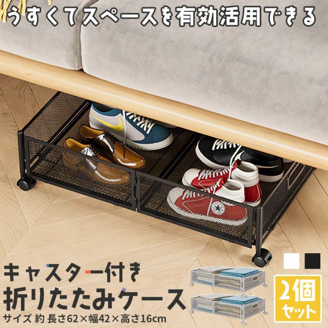 ベッド下収納ボックス キャスター付き 2個セット 2カラー ブラック ホワイト 薄型 服の収納ラック 折りたたみ式 大容量 収納ボックス 収納ケース 本 雑貨 くつ ぬいぐるみ 布団 毛布 介護用品 衣類収納 スペース活用 子供部屋 寝室