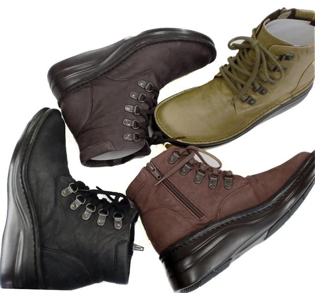 日本製 本革 ショートブーツ レディース ブーツ ウェッジ 厚底 幅広 3e 4e 外反母趾 レースアップブーツ レザーブーツ ショート レースアップ トレッキングシューズ