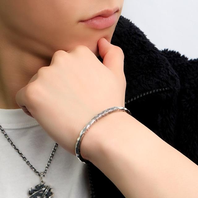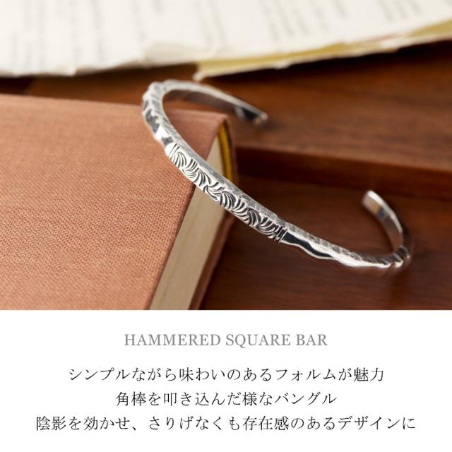 VIVIFY ビビファイ 槌目 ハンマード スクエア バー バングル シルバー 腕輪 ブレスレット 槌目模様 打ち目 ラフ 唐草 アラベスク プレーン 四角