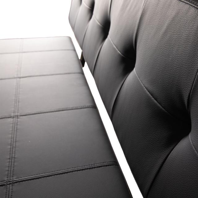 丁寧に施されたステッチの仕上がりが美しい背もたれ付きのベンチ