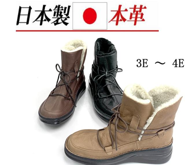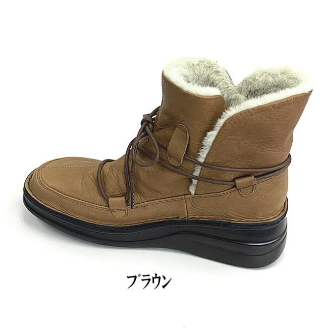 日本製 本革 ショートブーツ レディース ムートンブーツ ファー ブーツ ウェッジ 厚底 幅広 3e 4e 外反母趾 レザー レースアップブーツ ショート コンフォートブーツ