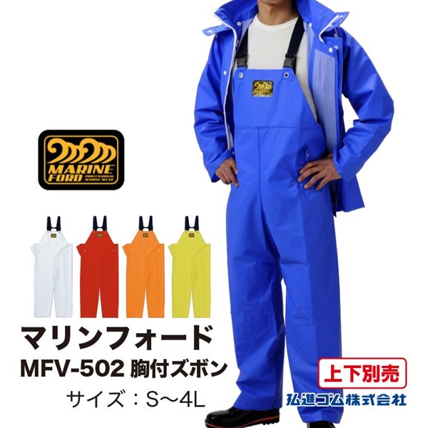 水産 合羽 胸付ズボン サロペット 弘進ゴム マリンフォード MFV-502 ブルーG0628AC ホワイトG0628AD 日本製生地 漁師 カッパ 上下 別売 かっぱ