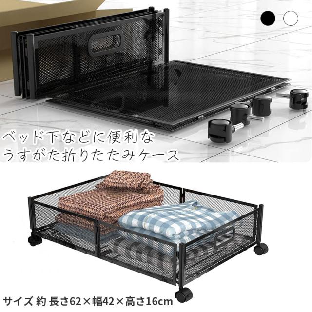 ベッド下収納ボックス キャスター付き 2カラー ブラック ホワイト 薄型 服の収納ラック 折りたたみ式 大容量 収納ボックス 収納ケース 本 雑貨 くつ ぬいぐるみ 布団 毛布 介護用品 衣類収納 スペース活用 子供部屋 寝室