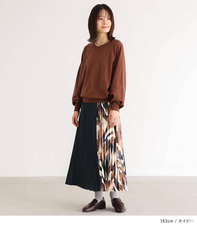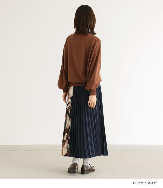 ■デザイン サイドを柄で切り替えたアコーディオンプリーツスカート。ボタニカルを思わせるアート柄が目を惹く一枚です。ウエストは総ゴム仕様でストレスフリーな穿き心地。 ■素材 無地部分には上品な光沢感があるピーチサテン生地を使用。印象的なボタニカル調の柄生地を切り替えました。滑らかな肌触りの裏地付きです。 ■コーディネート 一枚で存在感のあるスカートなので、無地のシンプルなアイテムと合わせるだけでお洒落な着こなしが完成します。柄に使用されているカラーと同系色のアイテムで合わせると、統一感のある着こなしに。 |