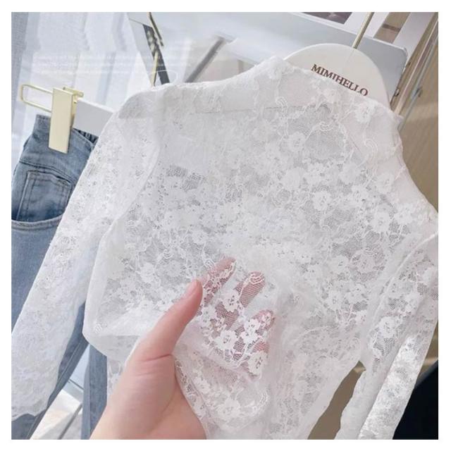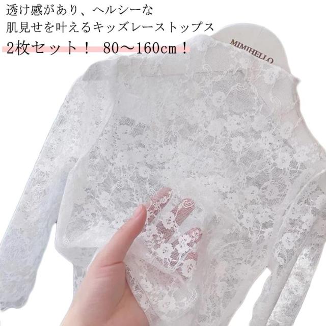 2枚セット! 80〜160cm! シースルー トップス キッズ 春夏 秋 シアートップス レース カットソー シースルー 長袖 チュール シースルートップス 刺繍 花柄 インナー ハイネック レイヤード 透け感 UVカット 日焼け止め キレイめ