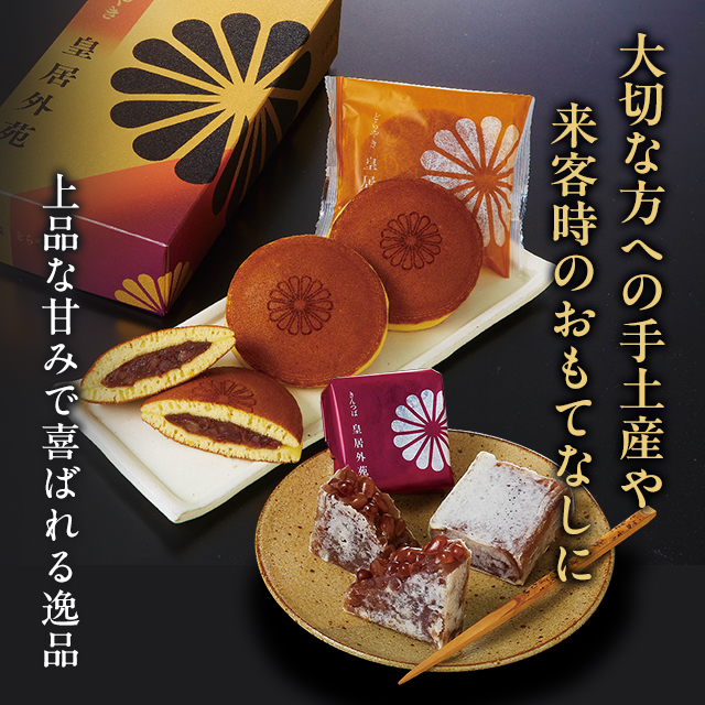 ・皇居参観で人気の和菓子をセットでお届け。
