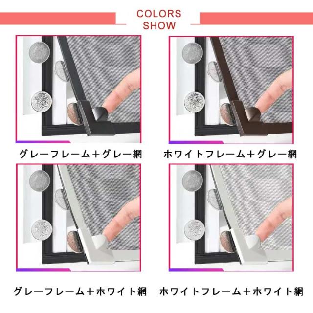 | 色 | グレーフレーム+グレー網 ホワイトフレーム+グレー網 グレーフレーム+ホワイト網 ホワイトフレーム+ホワイト網 |